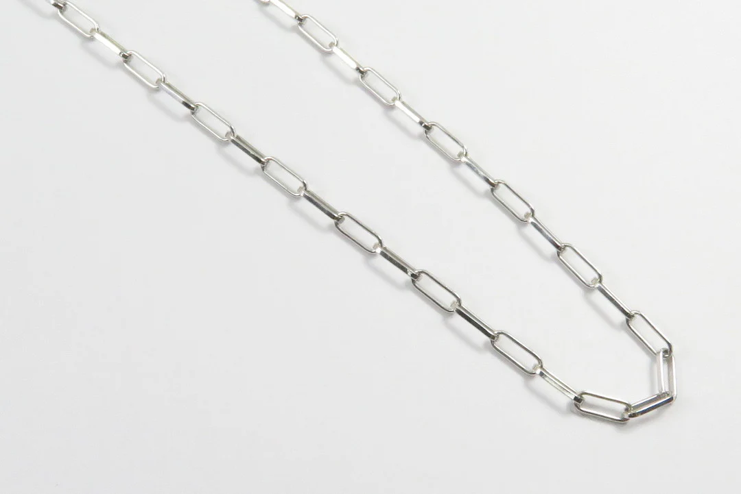 One of the trendiest link patterns is the ever so popular Paperclip. This versatile chain is self adjustable in that the clasp can be clipped to any link for your desired length. One of the easiest necklaces you'll have in your jewellery box, this chain can be worn with or without a pendant. Available in three difference gauges and various lengths to help you find your perfect fit.