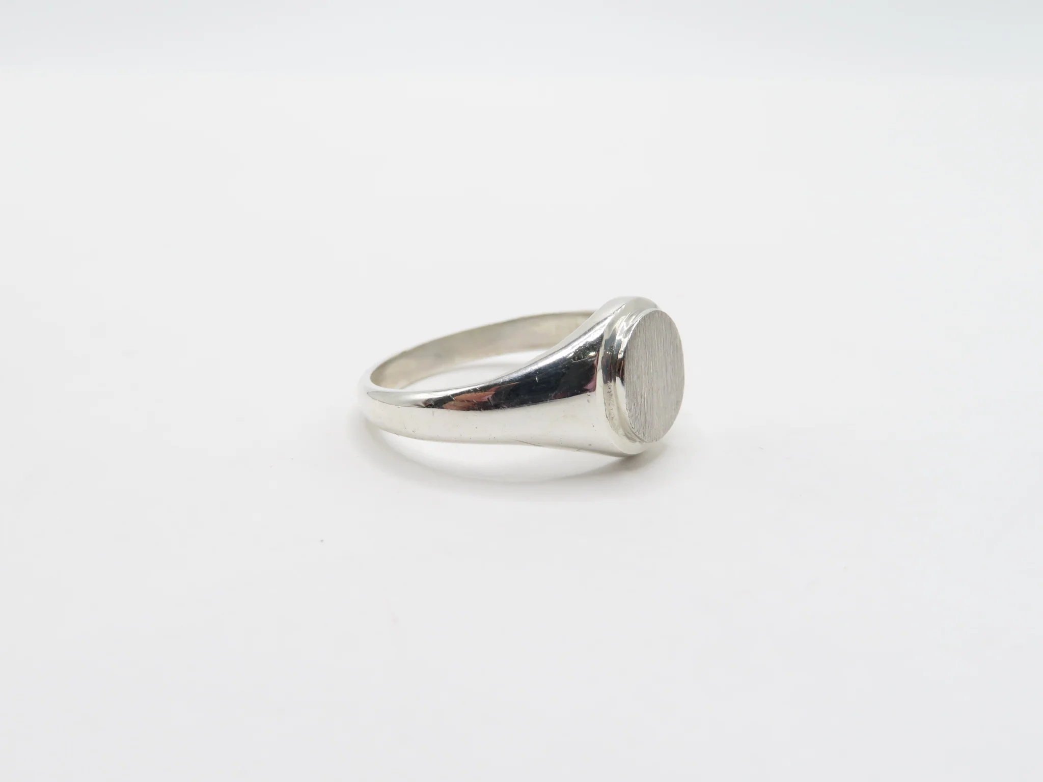 Is there anything more classic than a Round Signet Ring for everyday wear? Small enough to wear as a pinky ring or to gift to a young adult to mark for a special occasion. Finished with high polished sizes and a mattified center. Monogram laser engraving available.